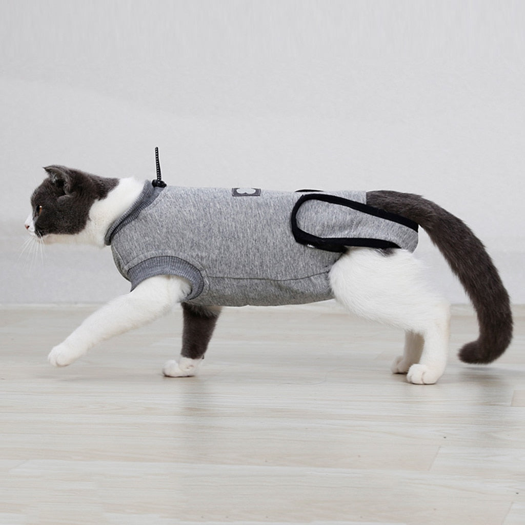 Feature: E Collar Alternative: no need to wear Elizabeth collar when wearing surgical clothes to prevent infection caused by pet licking wounds, while also more comfortable, and the large block of coverage can stop licking desire. Convenient: the magic sticker design is adjustable flexibly to make cats more comfortable. The...